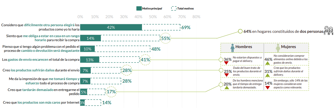 Uno de los principales motivos de las bajas ventas de comercio electrónico de alimentación es que solo el 20% de los internautas se muestras receptivos a realizar una compra de este tipo. Podemos analizar algunas de las causas por las que este tipo de venta no crece tanto como los analistas han indicado: